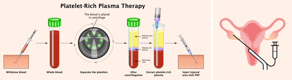 Một hướng điều trị tiềm năng đang được quan tâm là tiêm huyết tương giàu tiểu cầu (PRP) tự thân vào buồng trứng. PRP là chế phẩm sinh học được chiết xuất từ chính máu người bệnh, chứa nhiều yếu tố tăng trưởng như PDGF, TGF-β và VEGF – có khả năng kích thích tăng sinh tế bào, tái tạo mô và cải thiện tuần hoàn tại chỗ. Liệu pháp PRP đã được ứng dụng trong nhiều lĩnh vực y học tái tạo, và hiện đang được nghiên cứu mở rộng trong hỗ trợ sinh sản.