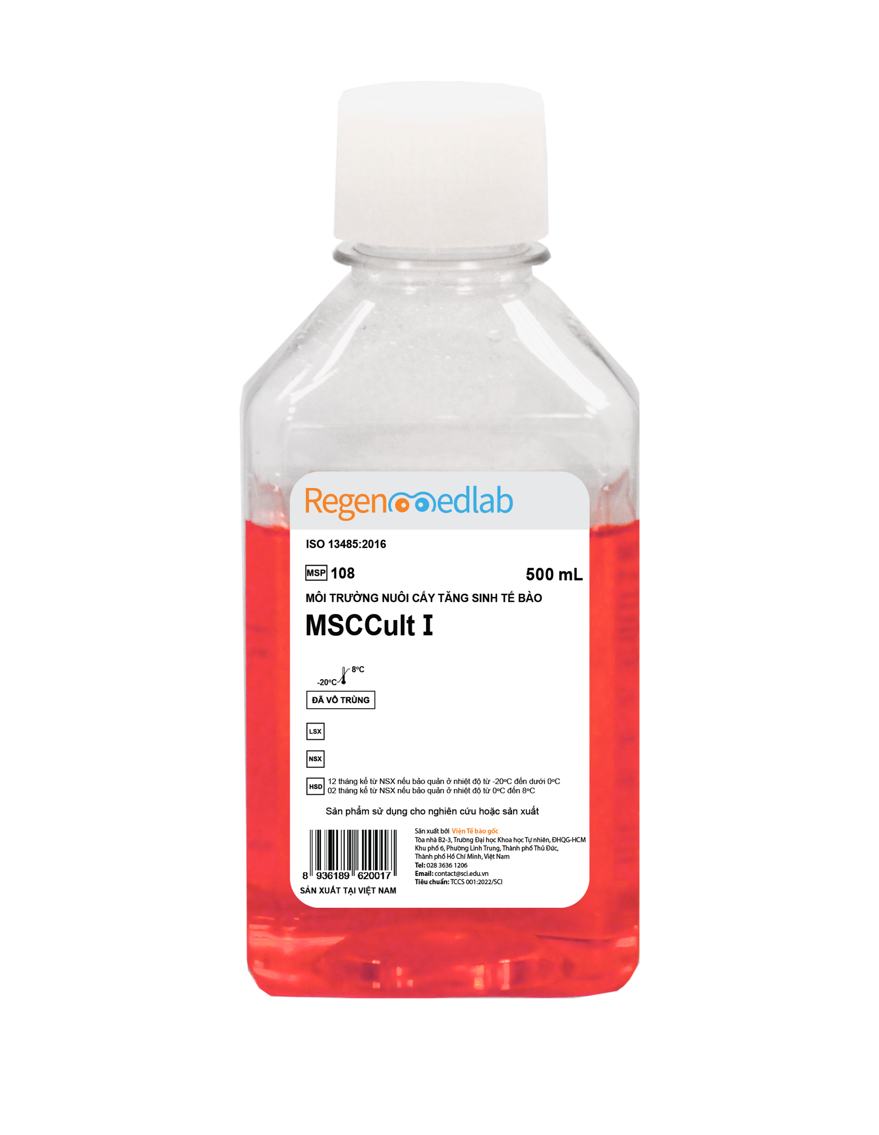 MSCCult I Ià môi trường được thiết kế chuyên biệt để nuôi cấy tăng sinh tế bào gốc trung mô từ mô mỡ, mô dây rốn, mô nha chu... có nguồn gốc từ người.