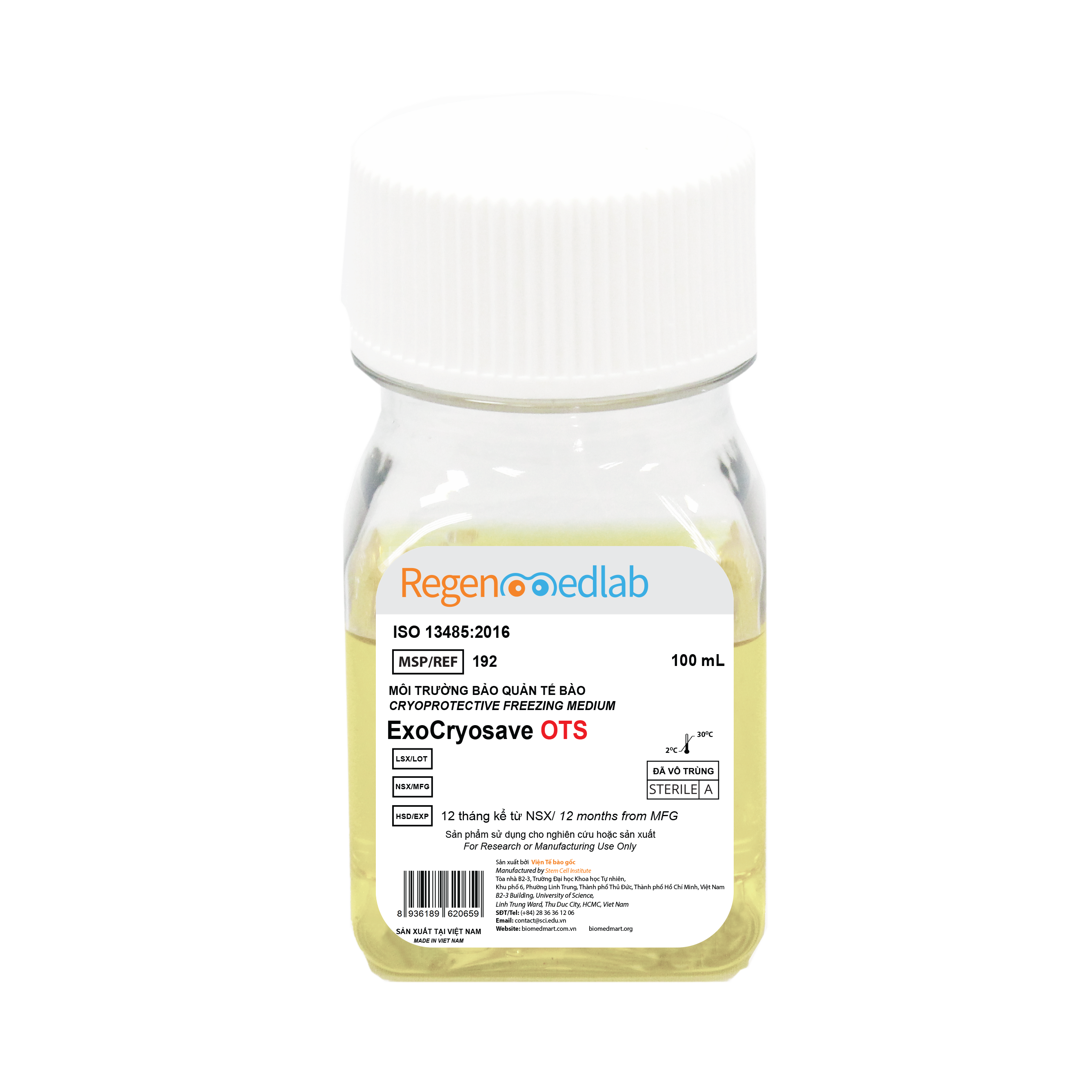 ExoCryosave OTS dùng trong bảo quản đông lạnh exosome, đạt tiêu chuẩn sử dụng trên người, cung cấp dạng 2X; sản phẩm có chứa human serum albumin (đạt tiêu chuẩn USP).